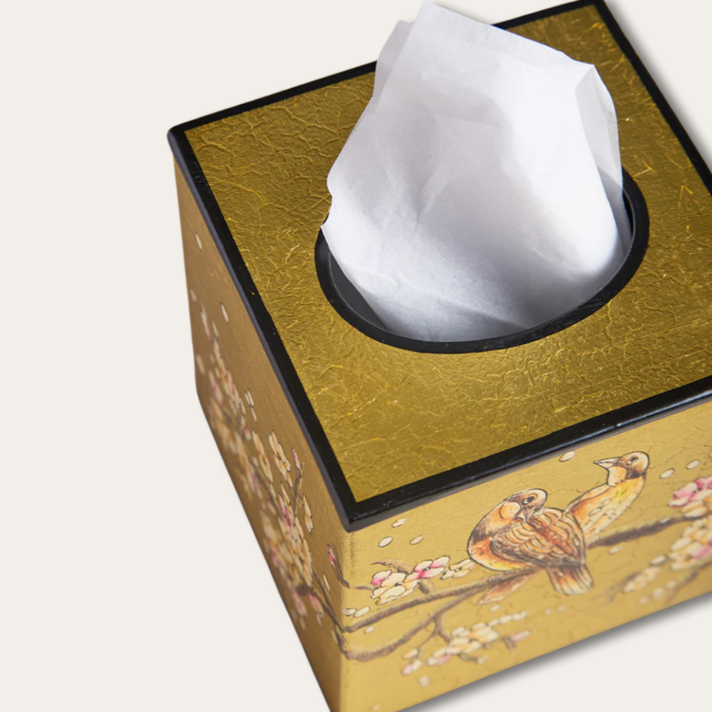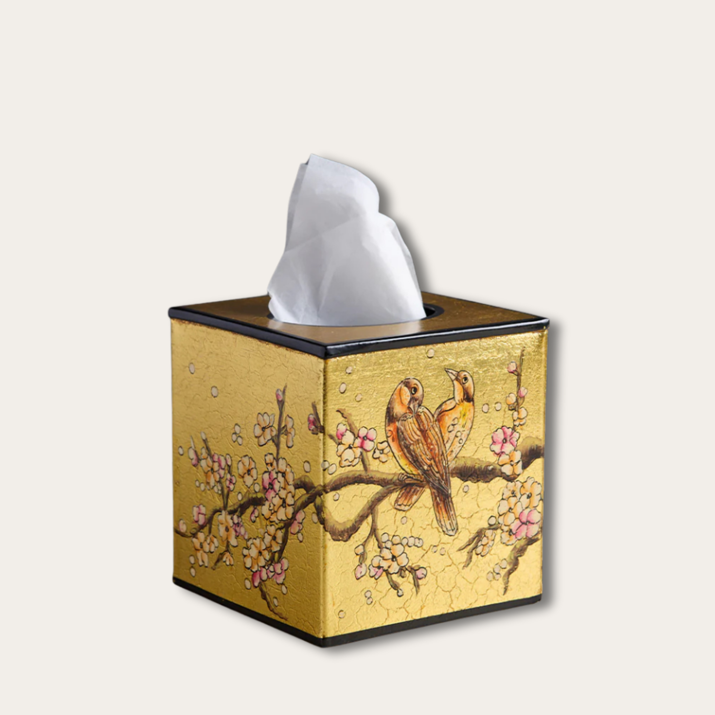 Amora Bloom Tissue Box – Golden Songbird Blossom