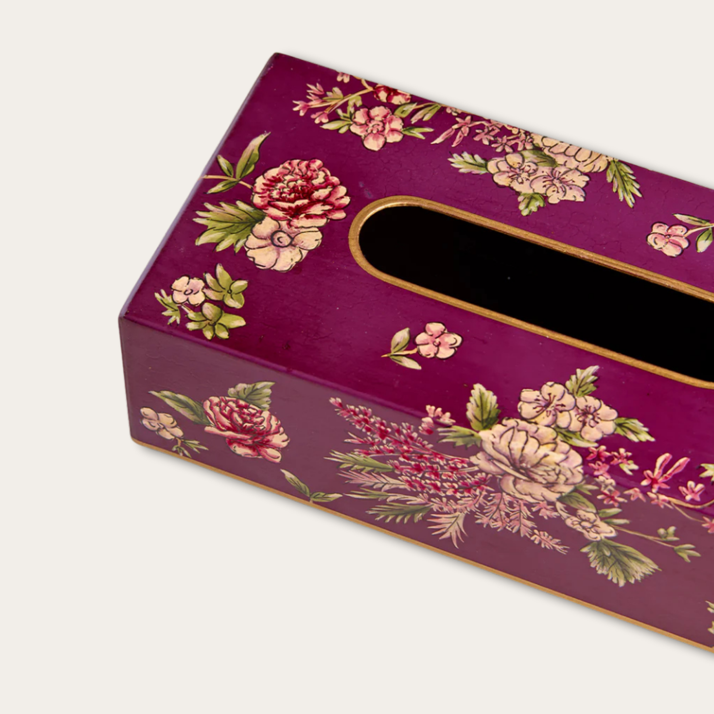 Amora Bloom Tissue Box – Vintage Peony Bouquet (Rectangular)